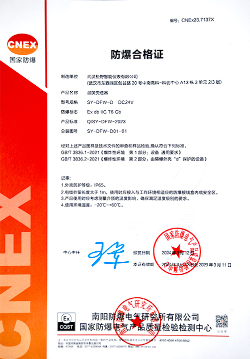 溫度防爆證書(shū)-隔離防爆合格證ExdbⅡCT6Gb